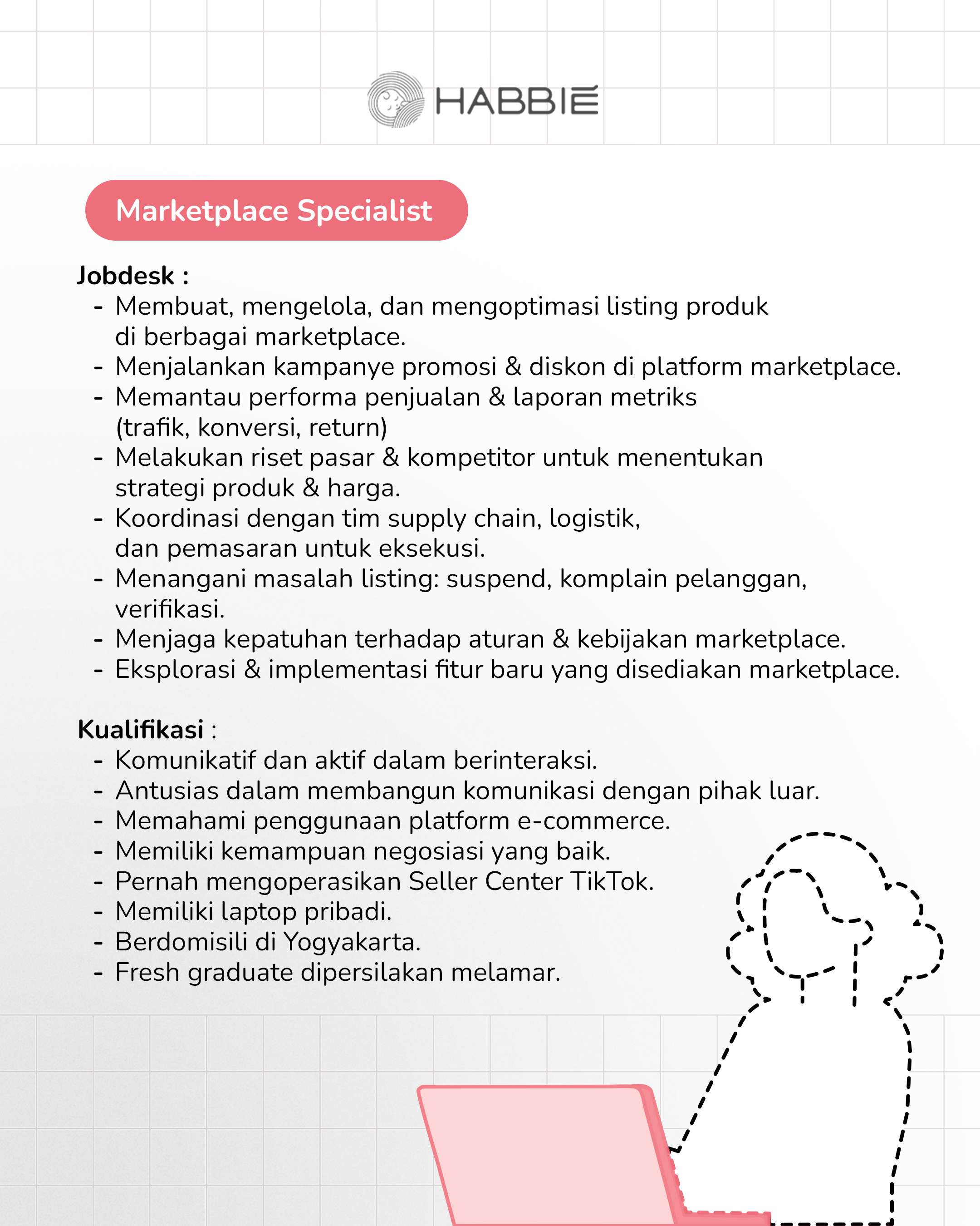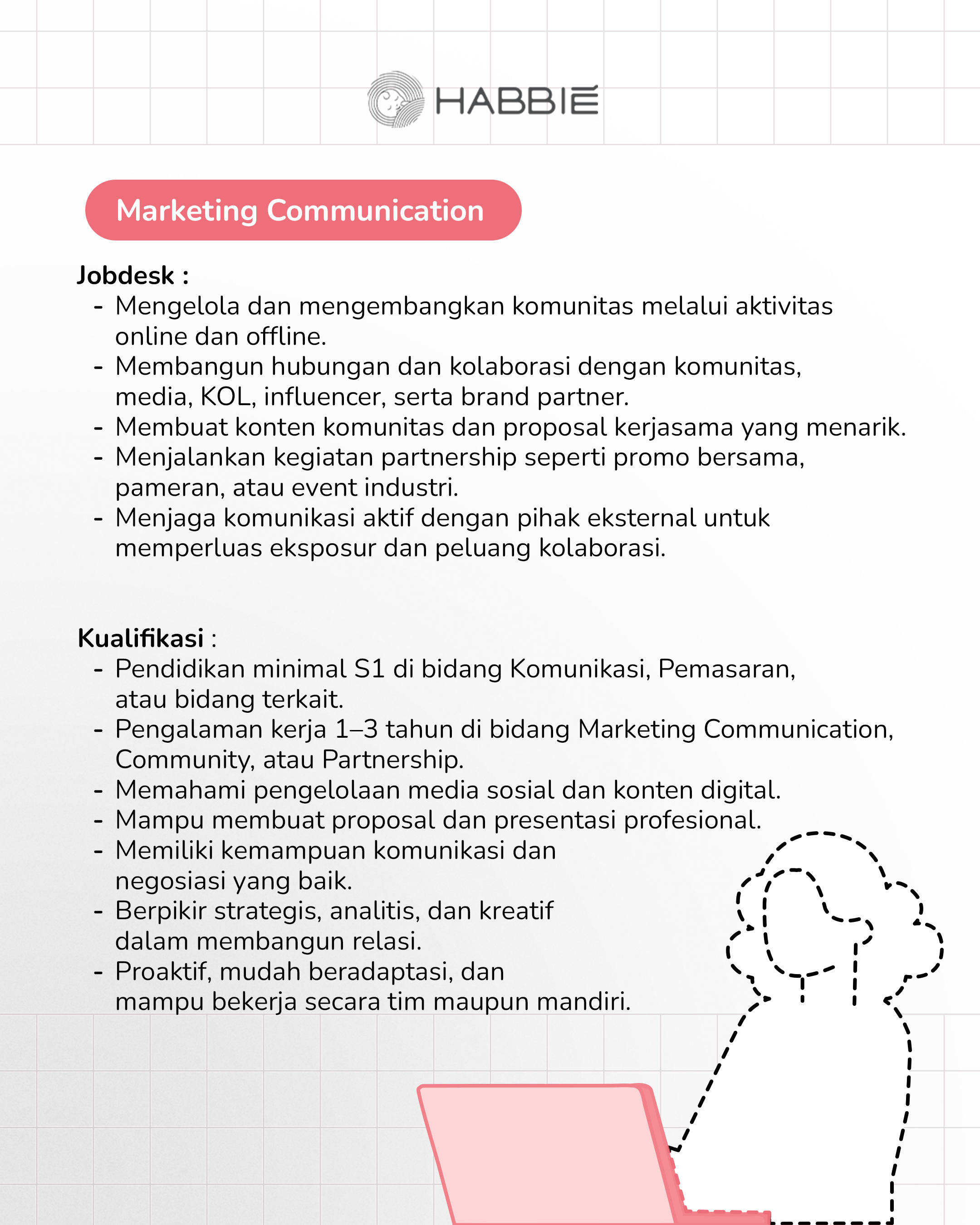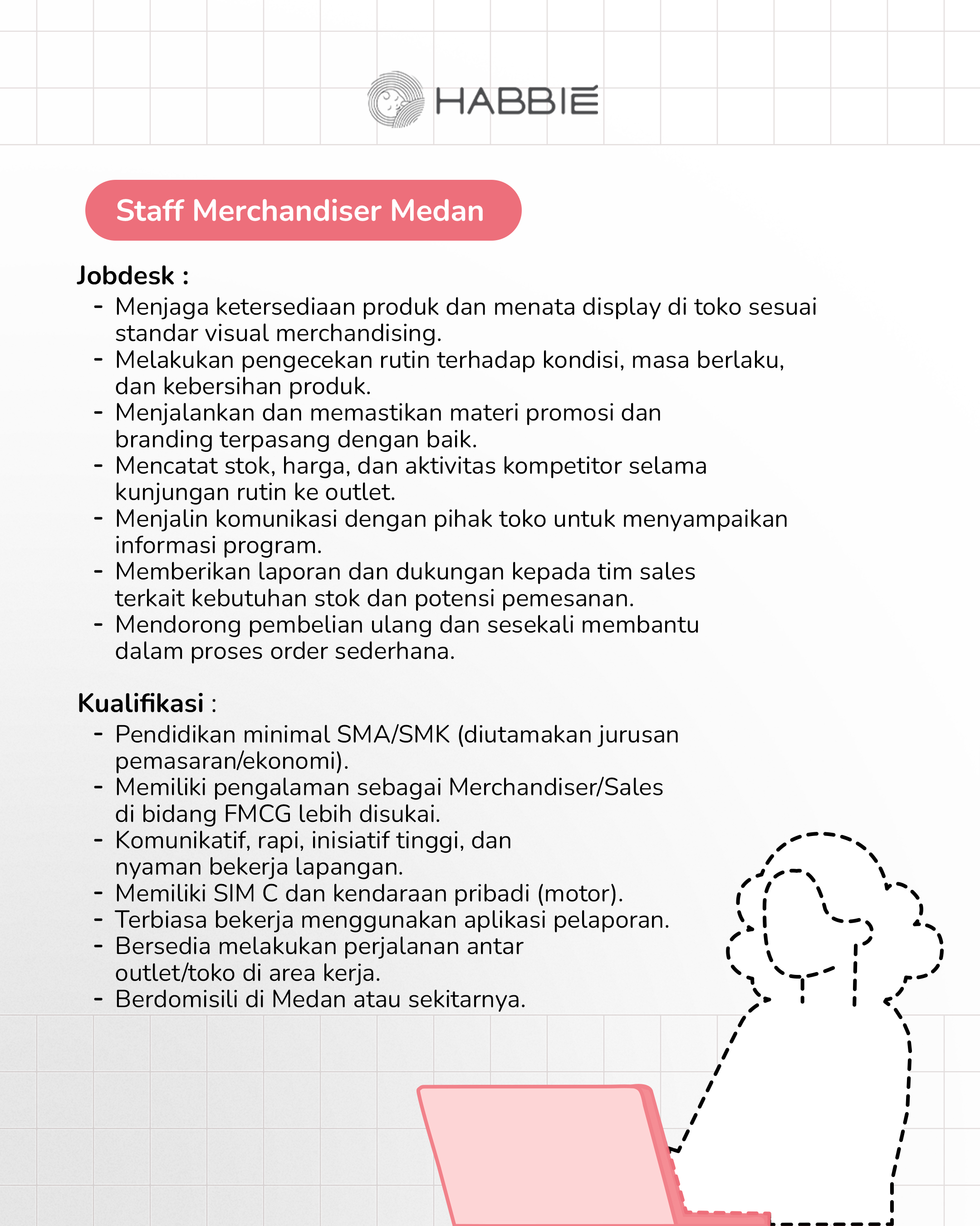 Kirimkan CV ke email: career@habbie.co.id atau DM Instagram @super_habbie